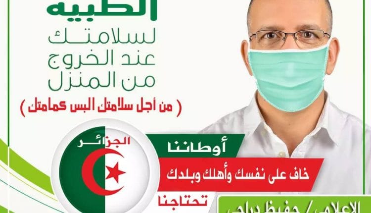 Pour assurer une large diffusion de sa campagne destinée aux citoyens algériens, il a conçu une affiche incitant au port de la bavette qu’il a partagé sur ses comptes et pages sur les réseaux sociaux.