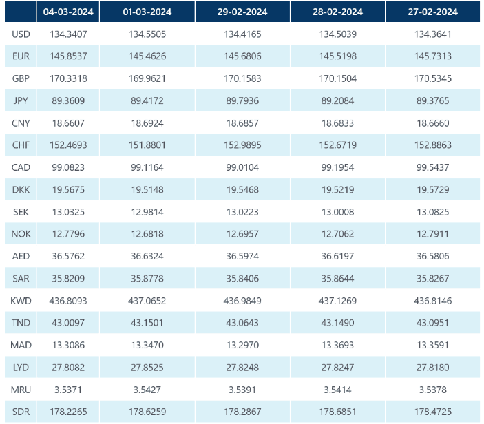 Euro-Dinar: Taux de change officiel ce lundi 4 mars