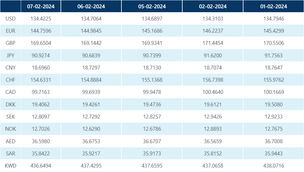 Dans le tableau ci-après, le taux de change de l’euro face au dinar sur le marché interbancaire des échanges d’Alger pour la journée du mercredi 7 février.