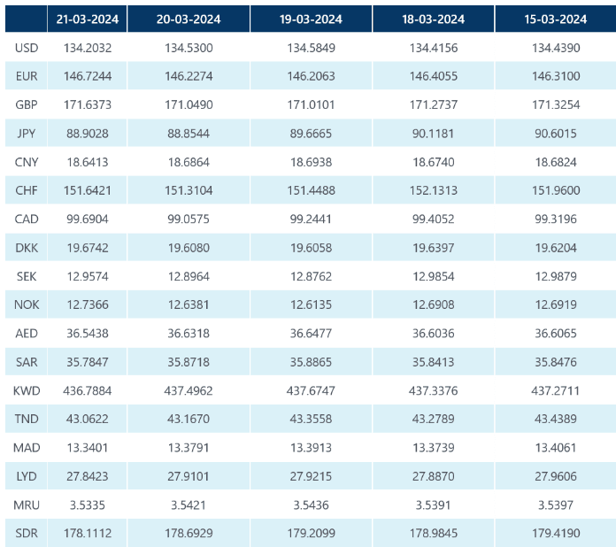 • La valeur du dinar face aux devises étrangères ce jeudi 21 mars